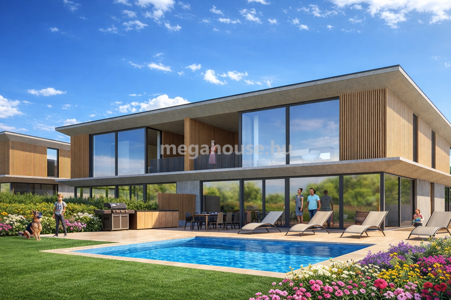 Balatonföldvár legszebb részén, nívós új ingatlanokkal beépülő területen, prémium minőségű 235 nm-es, N+3 szobás ingatlan 716 nm privát kerttel PANORÁMAMEDENCÉVEL ,680 M Ft-ért eladó.