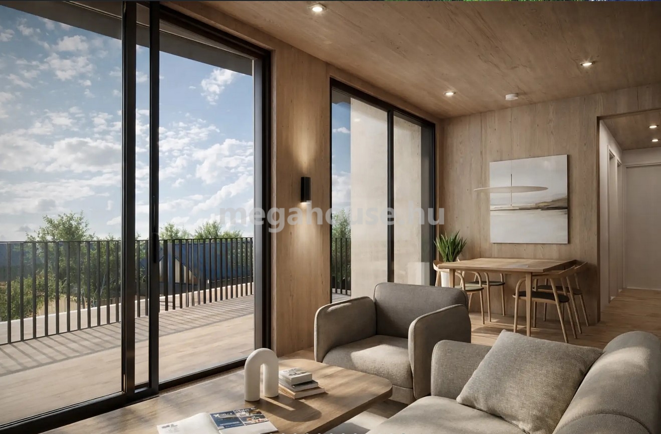 A belső terek kialakítása a funkcionalitást és az élményt egyszerre helyezi előtérbe. A közel 35 m²-es nappali-étkező-konyha tér központi szerepet tölt be, ahonnan nagyméretű üvegfelületen keresztül tárul fel a balatoni panoráma. A közvetlen teraszkapcsolat tovább erősíti a belső és külső terek egységét. Az emeleten három hálószoba kap helyet, melyek közül kettő szintén panorámás. A villák fűtéséről energiatakarékos hőszivattyús rendszer gondoskodik, az önálló mérőórák pedig teljesen különálló üzemeltetést biztosítanak.
