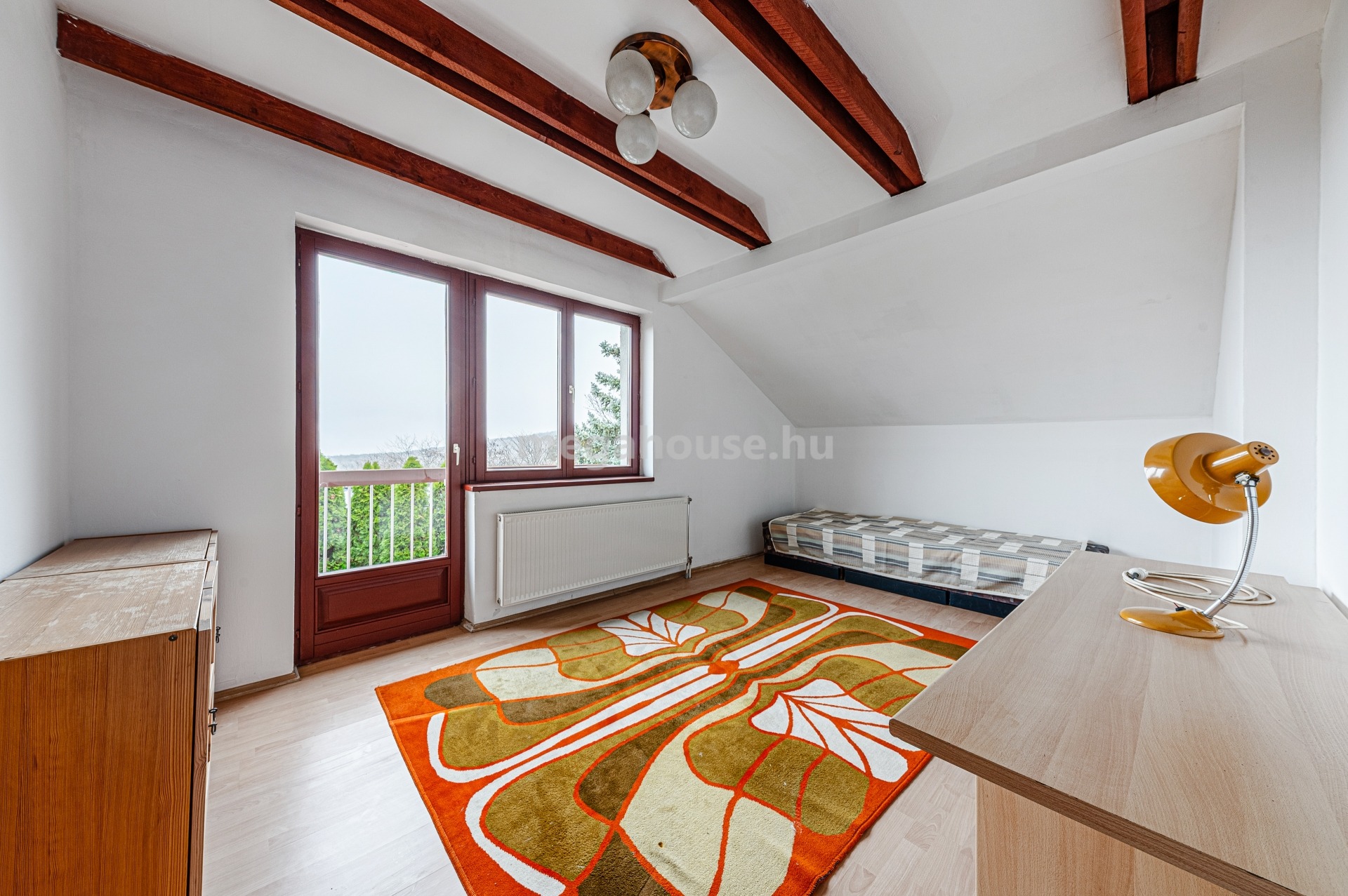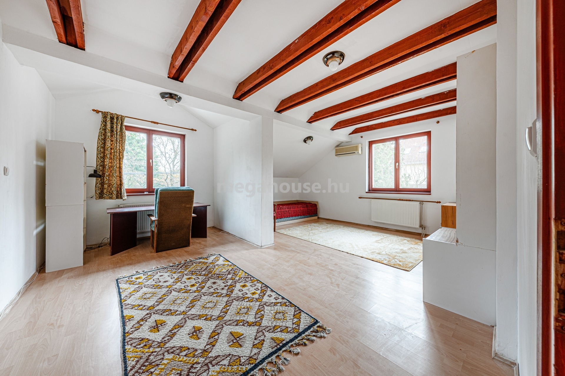 Az emeleti szinten 2 nagy szoba és tágas fürdőszoba fogad.