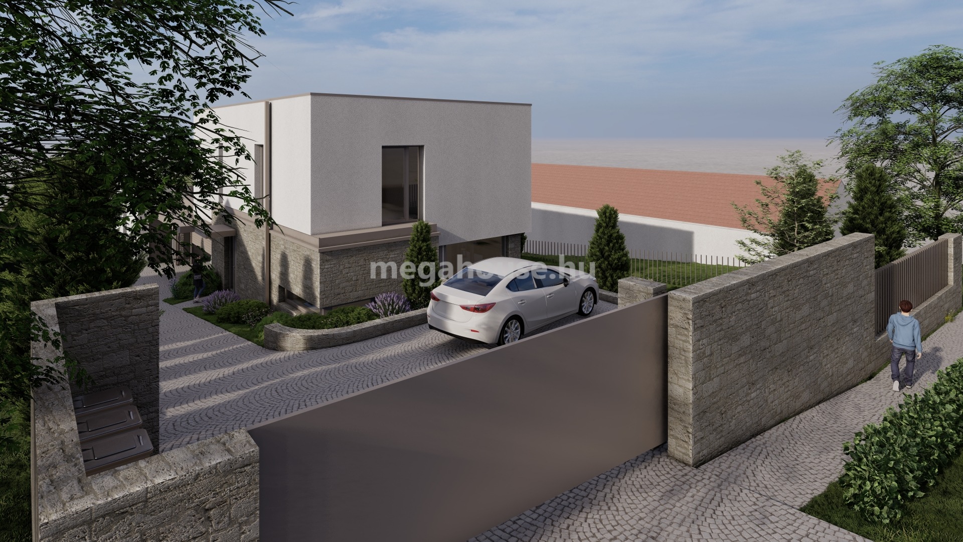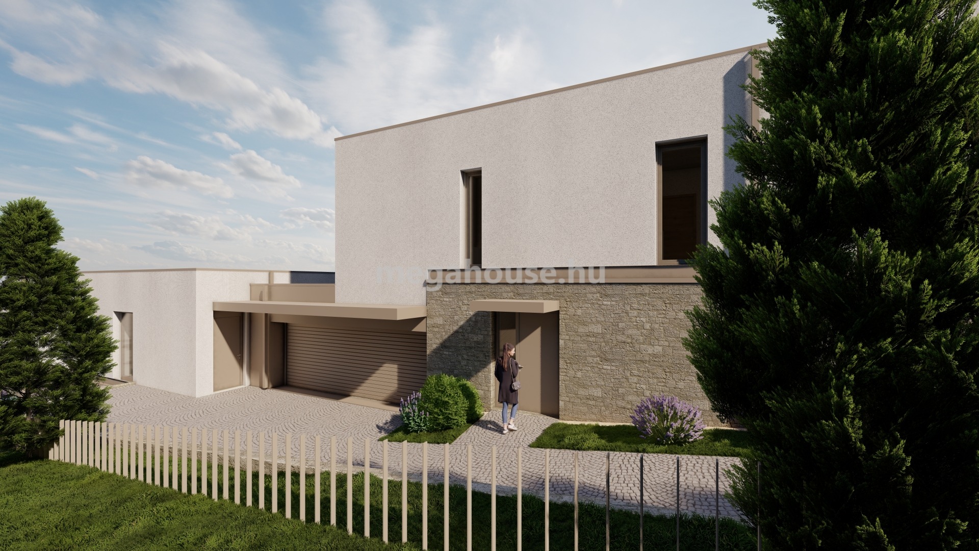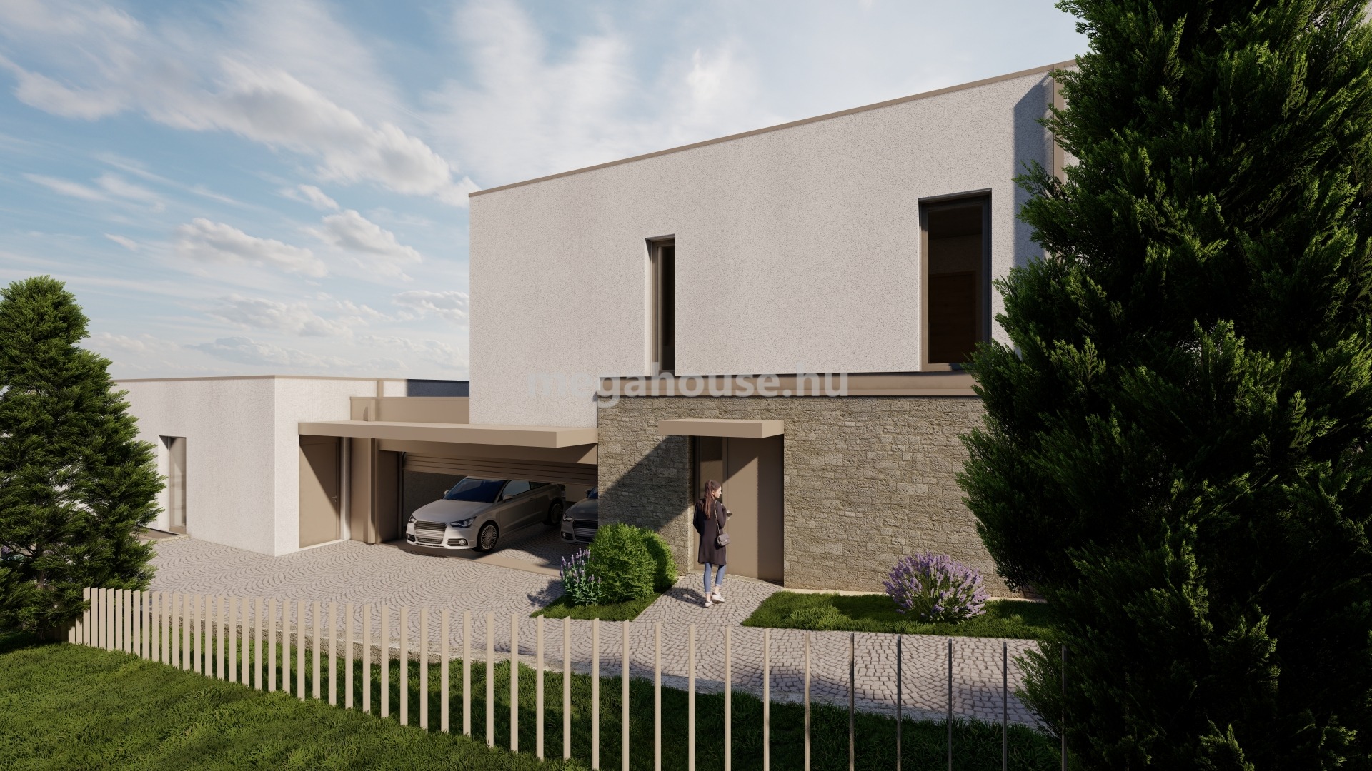 Az egy éven belül költözhető ingatlan tervezői külön figyelmet fordítottak a lakások privát szférájának maximalizálására. Ennek és a telek adottságainak köszönhetően a két ikerház felet mindösszesen egy kétállásos garázs köt össze, emellett teljesen külön telekbejárattal is rendelkeznek.