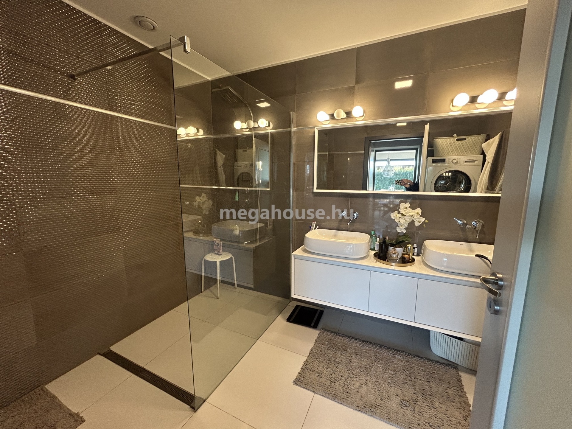 A 2018-ban épült ingatlan igazi luxus, Loxone rendszerrel üzemeltetett okos otthonként várja leendő lakóit. Az alaprajz kialakítása során a telek maximális kihasználása mellett figyeltek az élhető, kényelmes terek kialakítására is.
