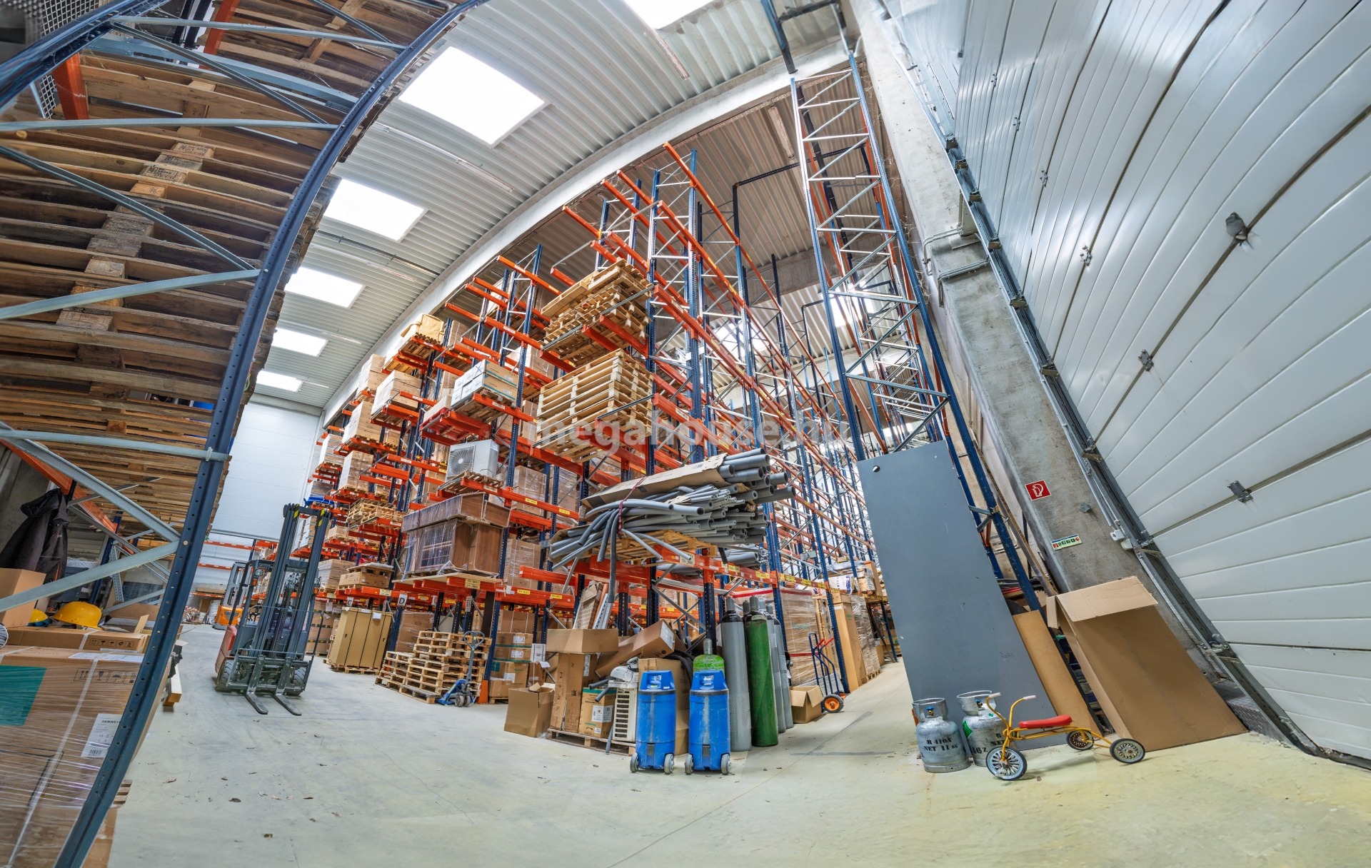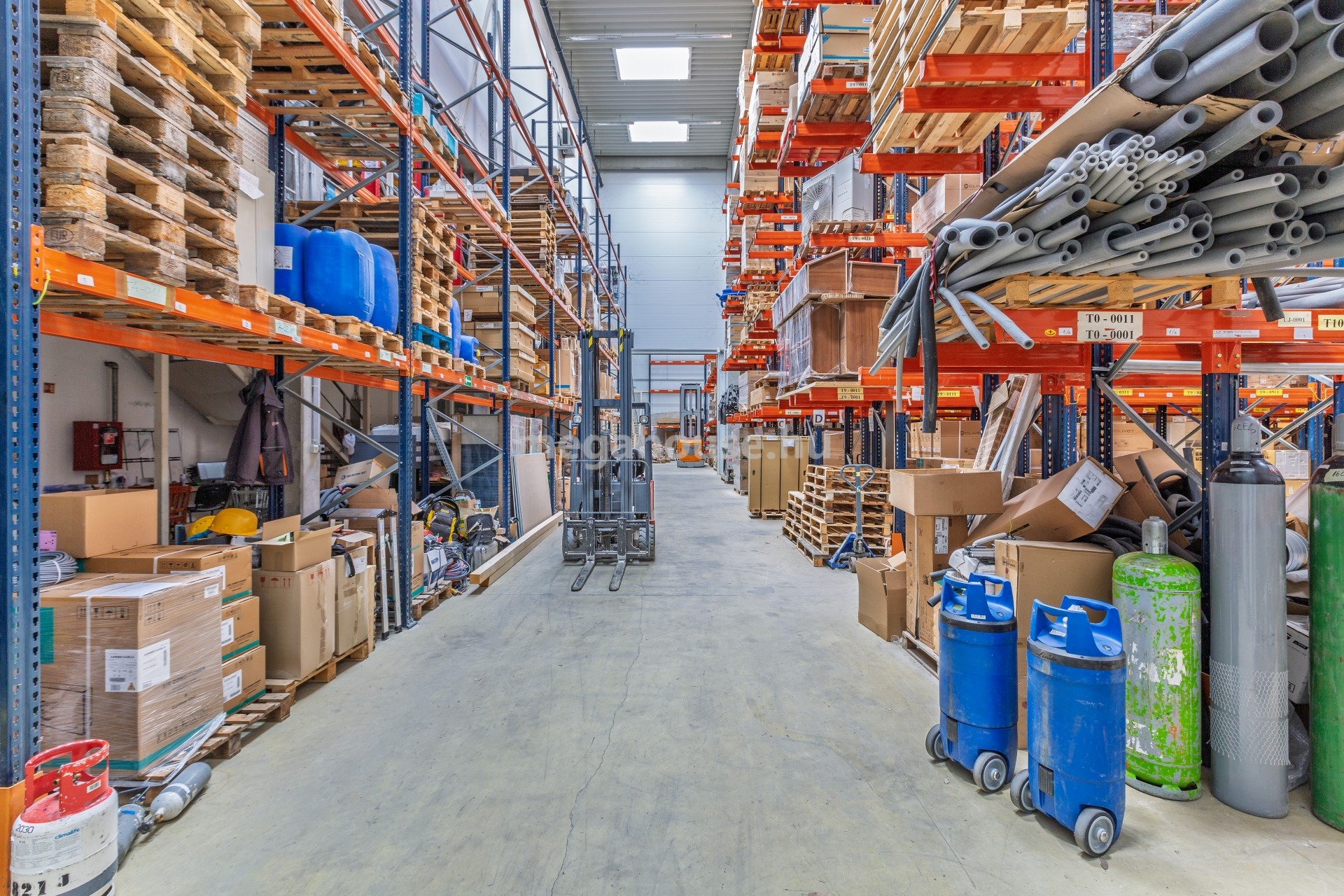 - Raklapos áru befogadására optimális 1.200 nm alapterületű, 12.6 m belmagasságú, műgyanta burkolatú, radiátoros temperáló fűtéssel ellátott, magas emelésű targonca rendszerre kiépített állvány rendszerrel rendelkező, 1800-2000 db raklap befogadására alkalmas raktár, amelyhez 29 nm szociális blokk, öltöző tartozik.