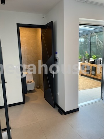 Az ingatlan földszintjén egy napfényes, amerikai konyhás/étkezős nappali található, melyhez közvetlenül kapcsolódik a pergolázott, 18 nm-es terasz, azon túl pedig az automata öntözőrendszerrel kiépített kert. Szintén a nappalihoz kapcsolódik a 23 nm-es télikert is. Ezen a szinten kapott helyet egy szoba, zuhanyzós fürdőszoba, valamint egy vendég mosdó is.