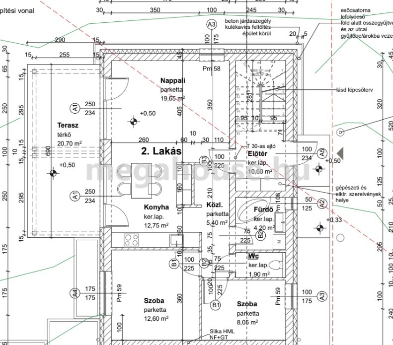 •Fedett terasz, esővízgyűjtő rendszer (265 l)