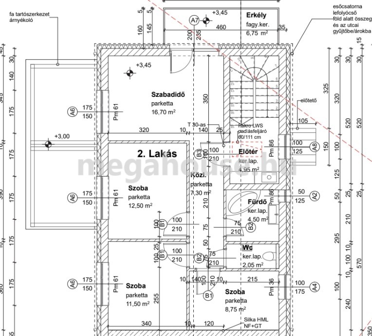- emeleti erkély: 6,75 m²