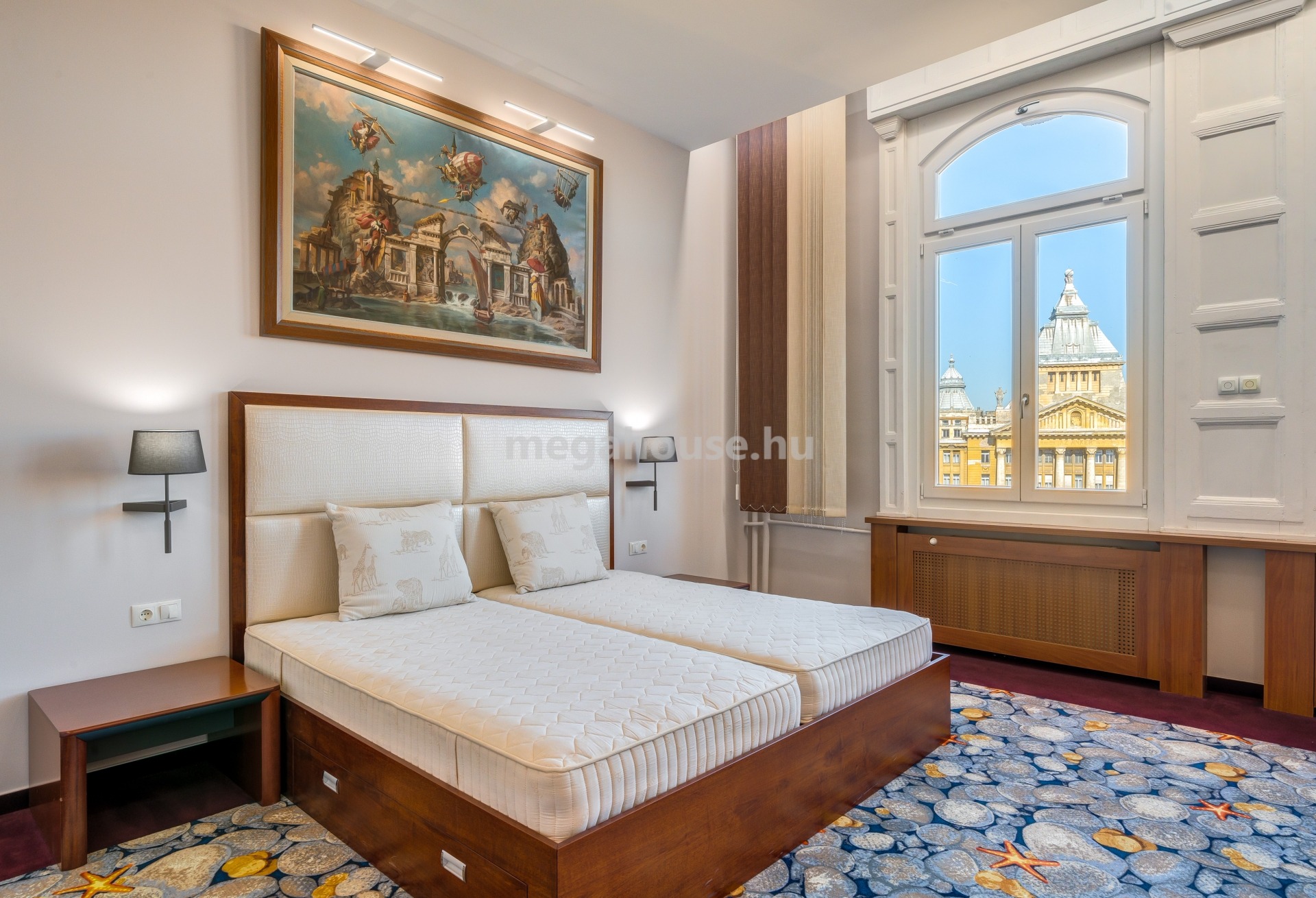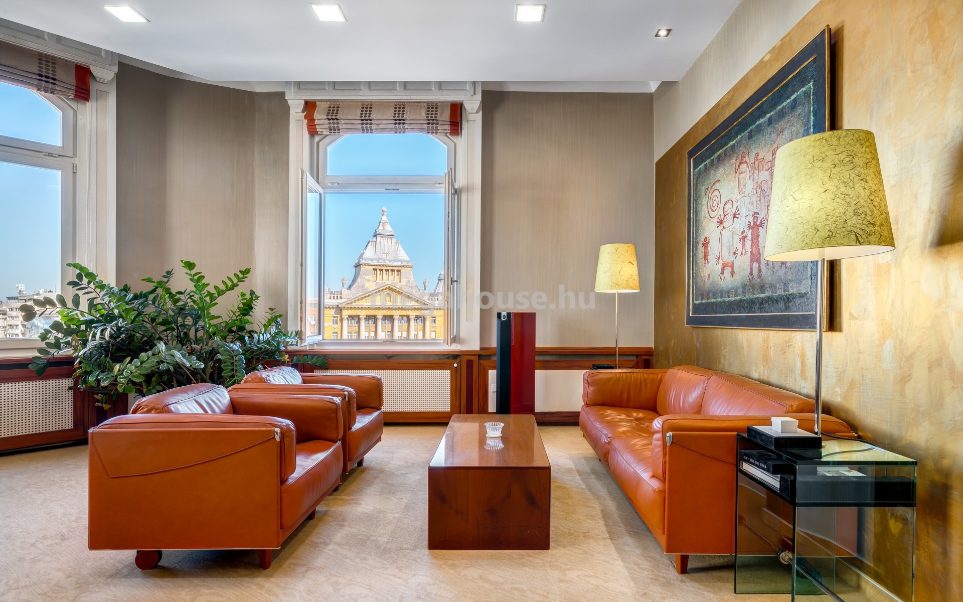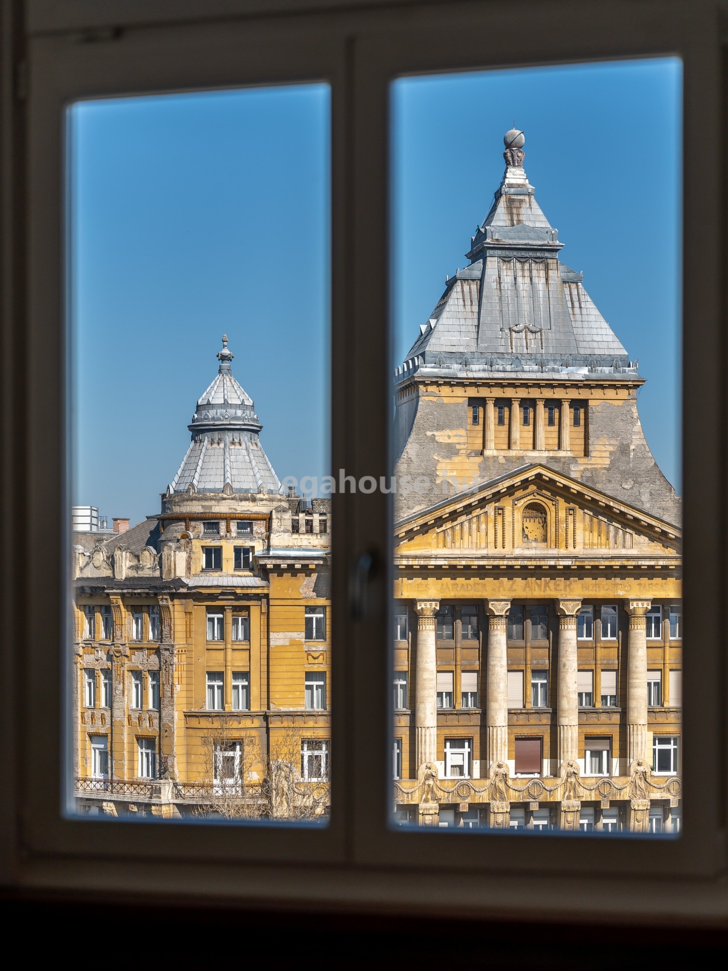Az épület ötödik szintjén található a bérlemény ahonnan szenzációs kilátásunk van a Deák térre és környékére.