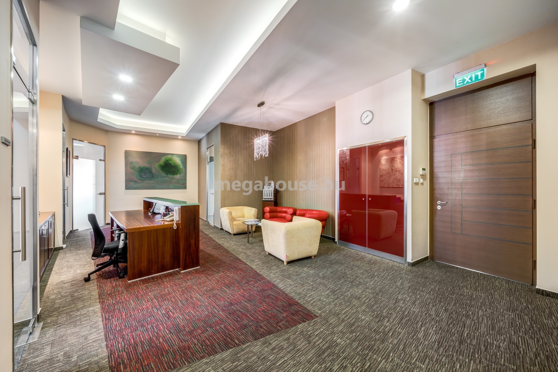 A bérlemény kialakítása funkcionális: a bejáratnál recepcióspult, és ügyfélváró, több méretű irodahelyiség , tárgyalók. mosdók találhatóak a legmodernebb trendi stílusban.