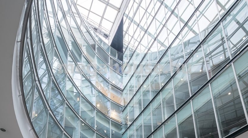 A 10 szintes épület építészeti különlegessége a világos belső átriumudvar és a négy panorámalift.