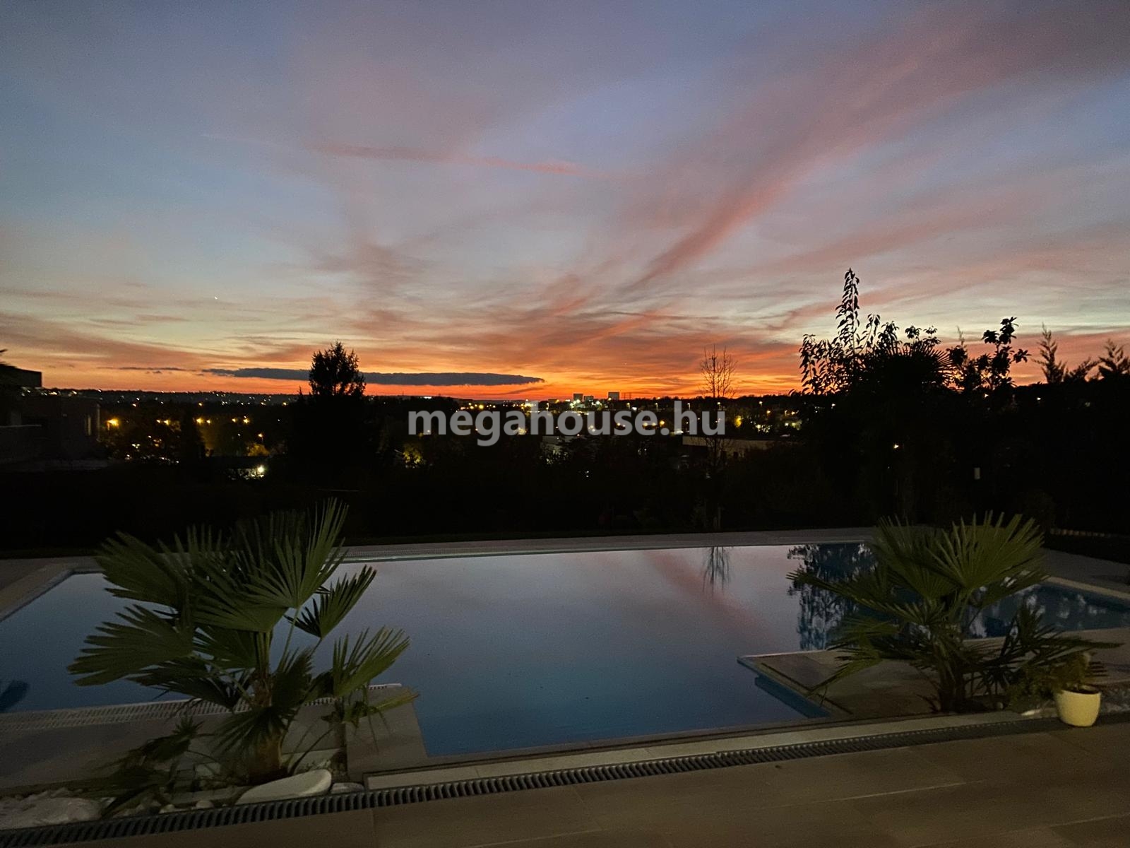 A tágas amerikai konyhás nappali 41 nm-es. Innen a részben fedett teraszra léphetünk ki, majd a csodálatos élményt nyujtó medencébe. A kert pázsitja hibátlan és különleges trópusi-egzotikus növényekkel van körbeültetve. Igazi élmény itt a pihenés, mert a domboldali felvés miatt a földszint is panorámás. A csodás naplementék mindennapi élmény itt.