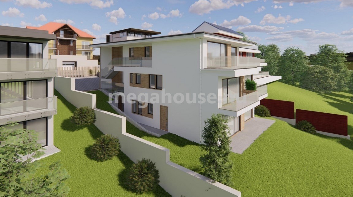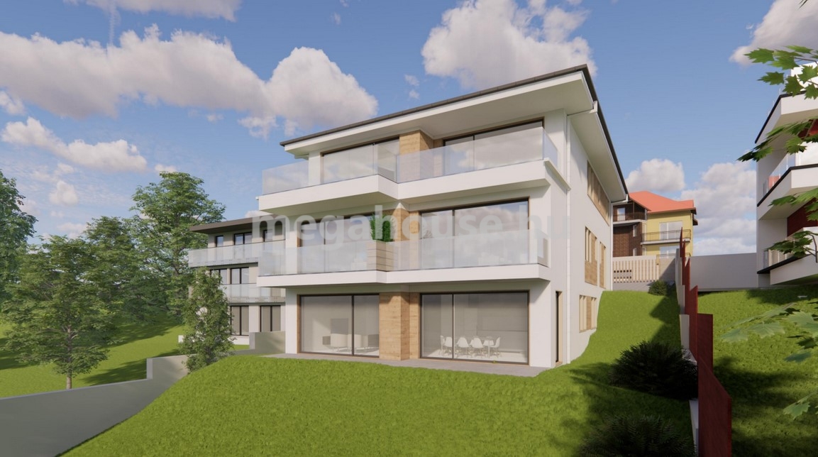 Szépen beépült környezetben, domboldalon elterülő nagy kerttel ,nettó 150 nm -es nappali+3 szobás lakás 22 nm-es terasszal és 500 nm-es kerttel 290 M Ft-ért eladó.