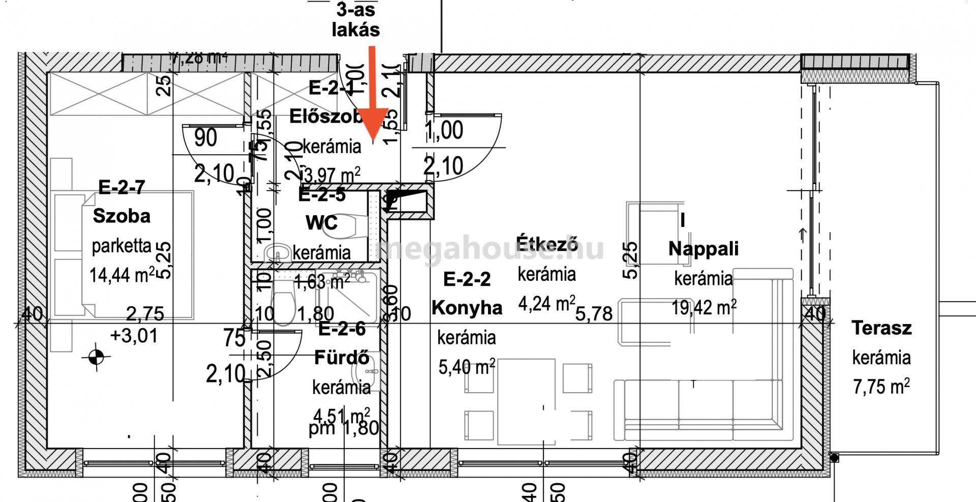 I. emelet 3-as lakás: N+1, 53,61 nm + 7,75 nm erkély, 138 M Ft
