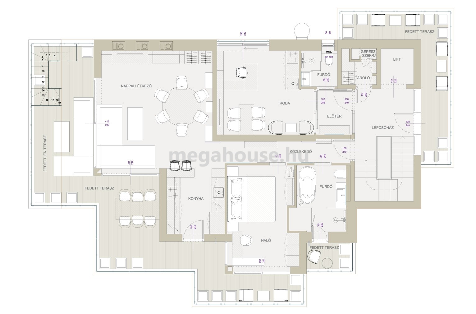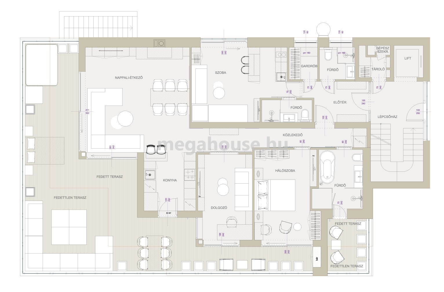 keresztül kiléphetünk a nagyméretű fedett teraszokra -, másrészt egy francia erkélyes