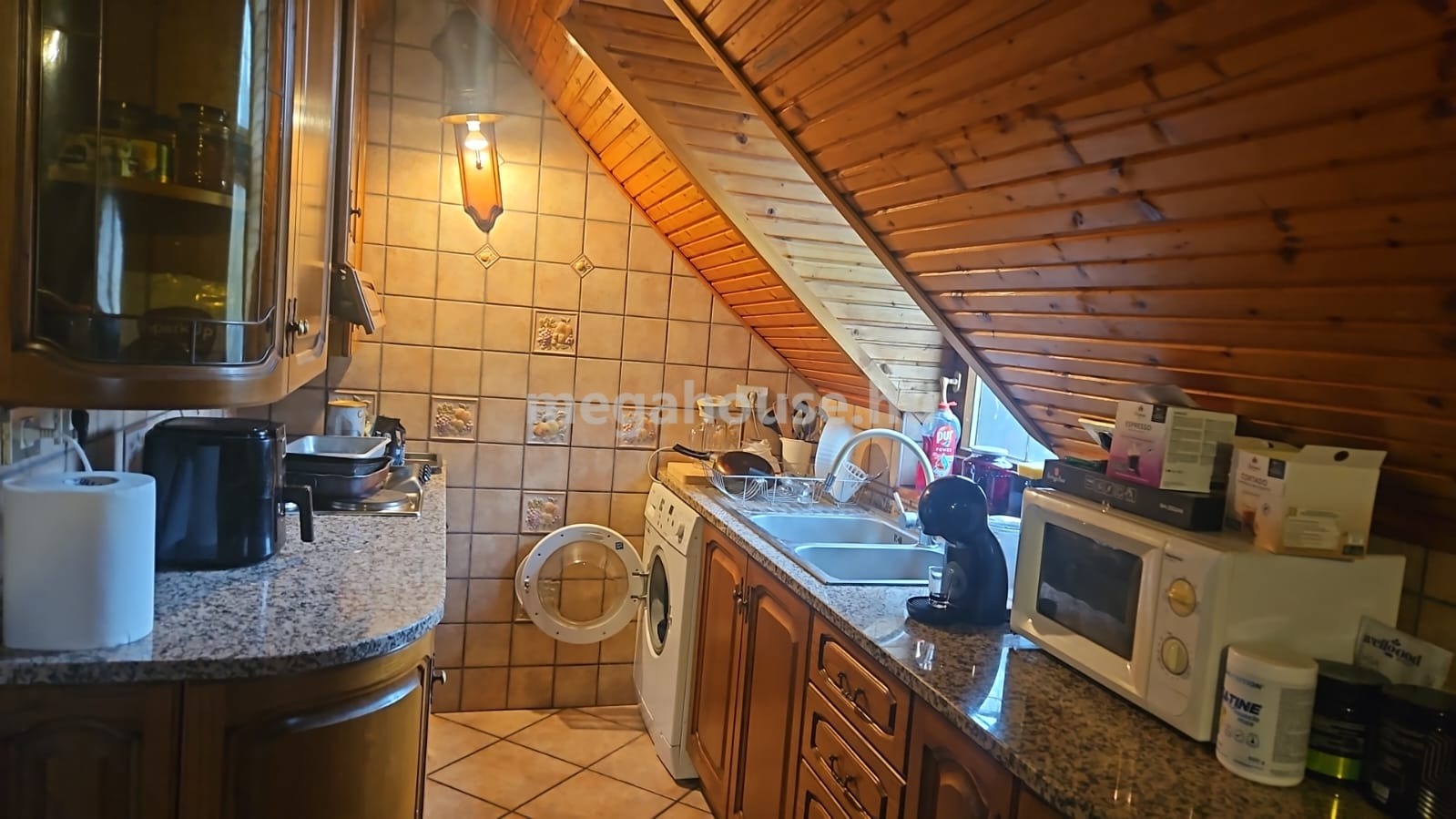 lakás1: Egy tágas, 3 szobás lakás erkéllyel ami belső kétszintes és felette egy 35nm-es "könyvtár" helység található.
