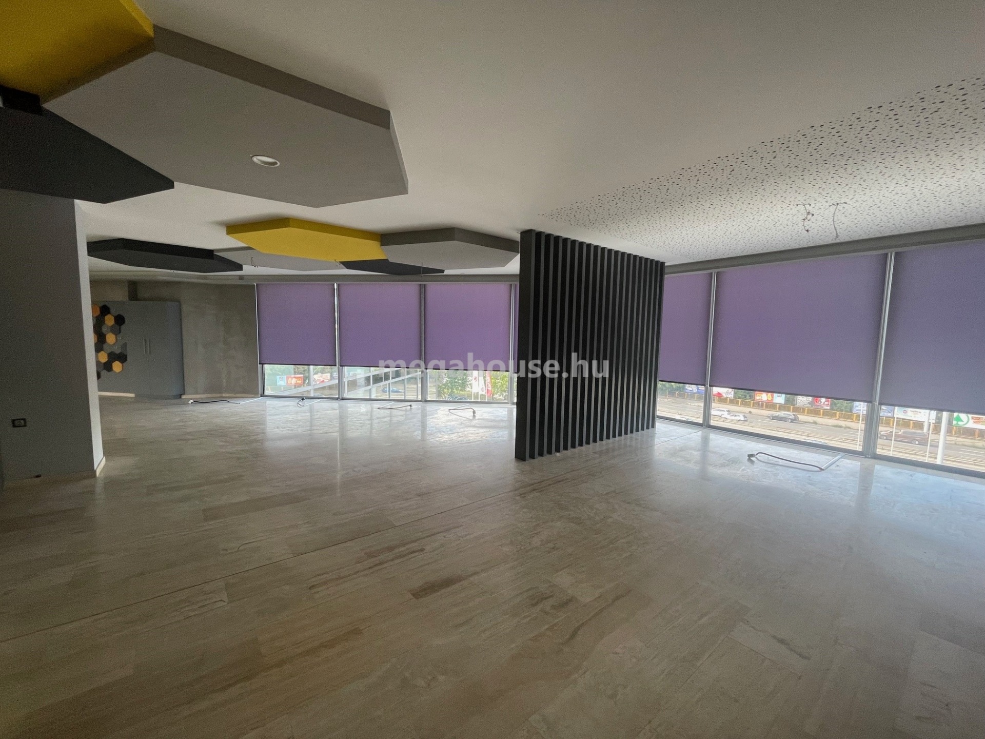 Budapesten, az M1, M7 bevezetőszakasza mentén, kiemelten látványos helyen 3 szintes irodaház 3. emeletén 241 nm irodaterület 3615 EUR/hó-ért kiadó.