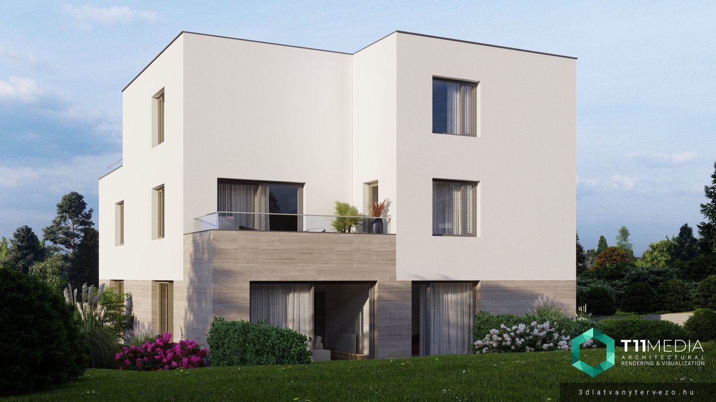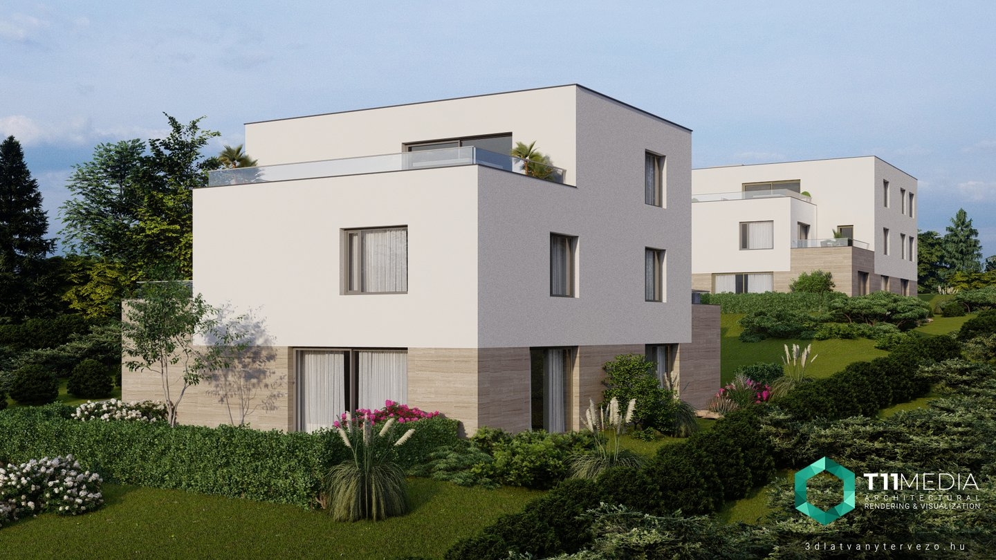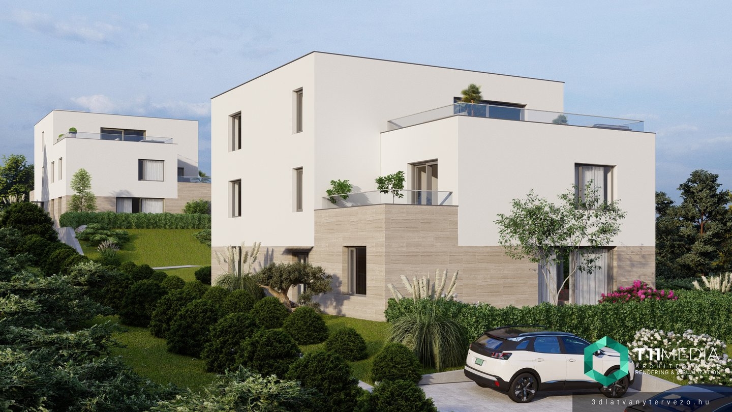 Madárhegyen, egyedülálló panorámával rendelkező projektben, két épület található 4-4 lakással, nagy méretű telken.