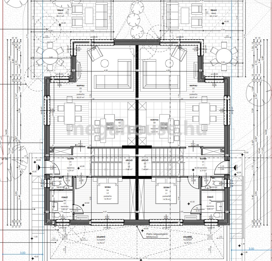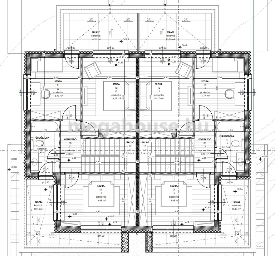 Mindhárom hálószobából közvetlen kijárat nyílik az emeleti teraszokra, tovább erősítve a térérzetet és az exkluzivitást.
