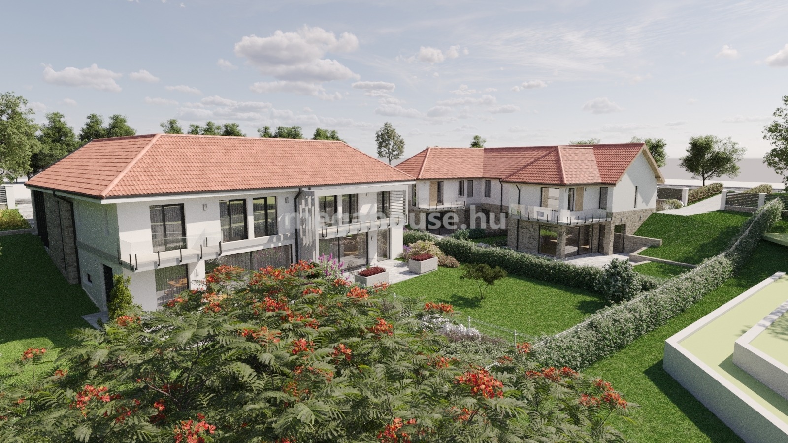 A lakópark Tükörhegy legelőkelőbb részén, távol a forgalom zajától, már teljesen kiépült környezetben kerül kialakításra ez a luxus lakópark, magas műszaki tartalommal. 4 ház épül az 1640 m2-es kuriózumnak számító ősfás saroktelken, 2 különálló épületben.