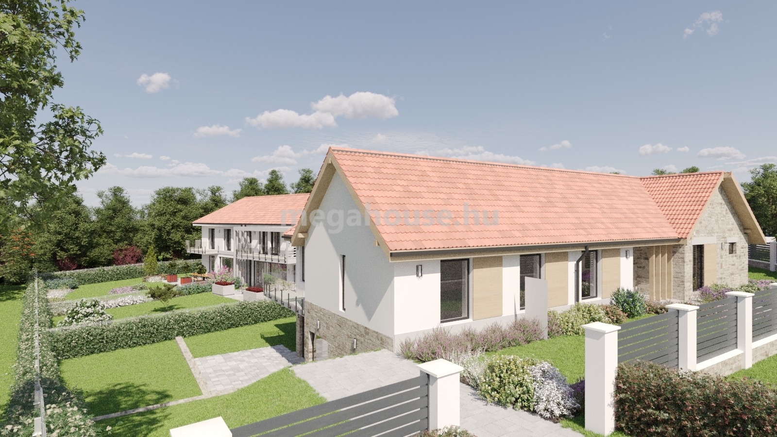 A házhoz tartozik egy motoros kapun keresztül megközelíthető kocsibeálló is, garázs opcionálisan kialakítható.